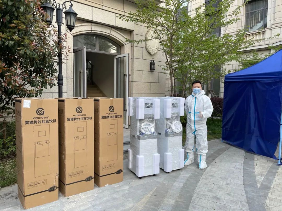 2022年上海新冠疫情封控期间,为了让医务人员和患者喝上安全的每一滴水,翼猫科技在嘉定区方舱医院安装翼猫智能公共直饮机(贵族1号),保障方舱医院人员的饮水安全。
