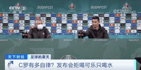 欧洲杯赛前新闻发布会出现这一幕。综合《每日邮报》《赫芬顿邮报》报道,在当地时间6月14日的发布会上,C罗“愤怒”挪开桌上两瓶可乐,随后拿来一瓶水说:“喝水,不要可乐。”