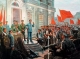 10月1日,在北京天安门举行开国大典。毛泽东主席庄严向世界宣告中华人民共和国、中央人民政府成立。自此,新民主主义革命任务基本完成,中国进入从新民主主义向社会主义过渡的历史时期。
