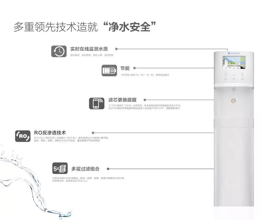 翼猫科技以自主知识产权的物联网智能远程控制技术为依托,云平台海量超级计算每6秒自动检测1次、TDS探头实时检测水质安全、系统自动提醒更换滤芯等功能完备,保证了每一滴水的纯净和安全,让人类喝上安全的每一滴水!