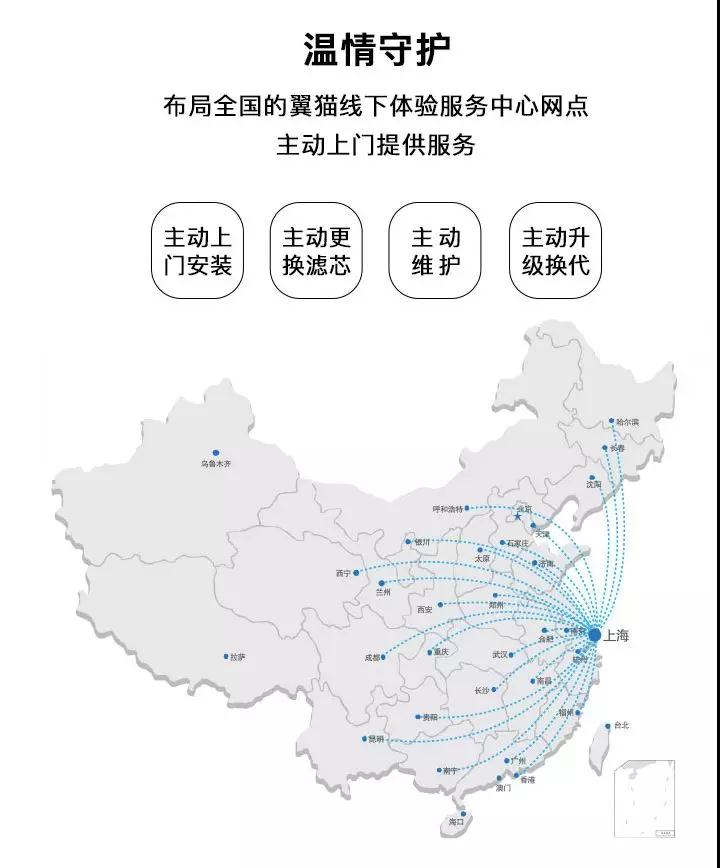 云平台会同步接收到指令,发送给翼猫售后服务人员。售后服务人员会主动上门为您维护、更换滤芯。